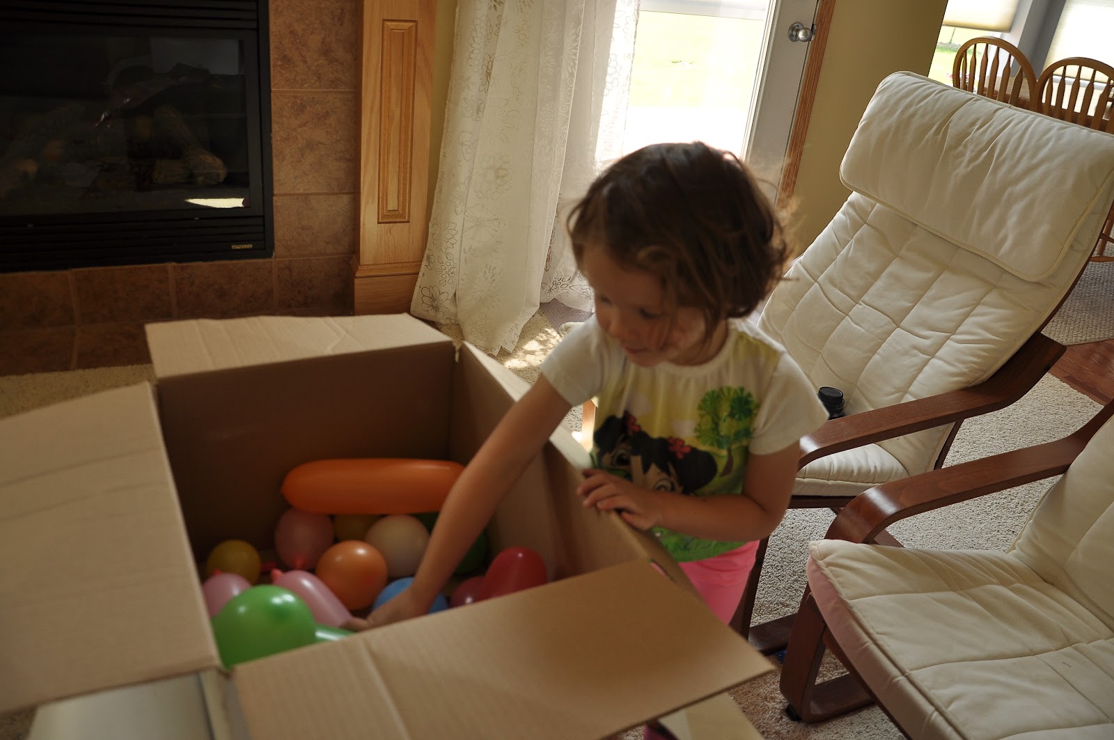 The girls got this box of balloons for their birthday from Uncle James, Aunt Jenna, and Olivia.